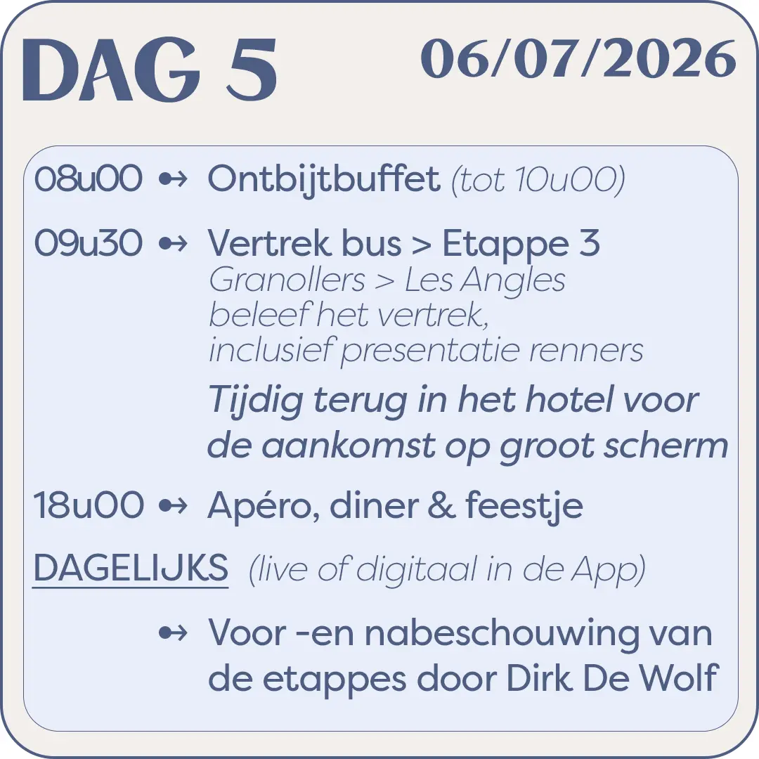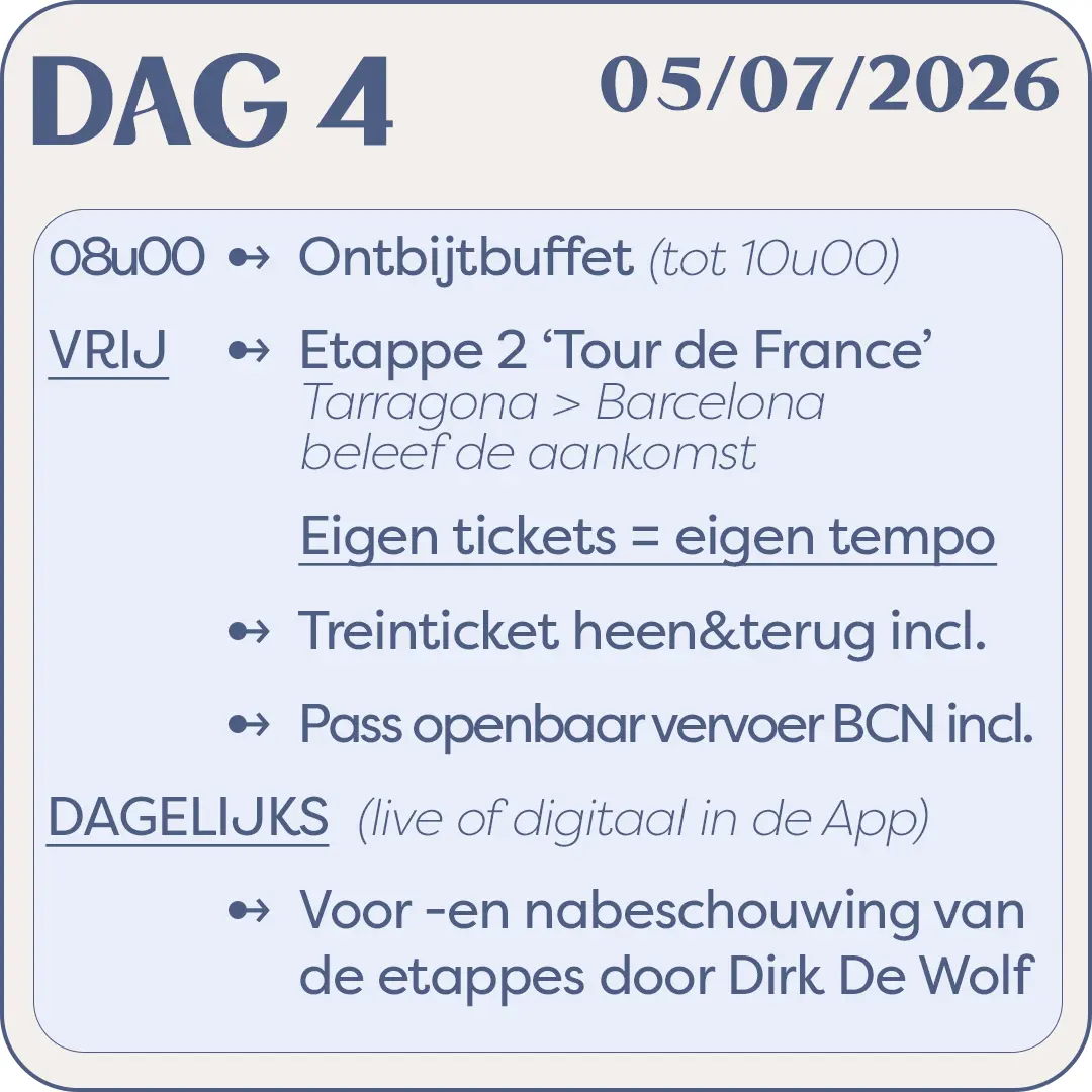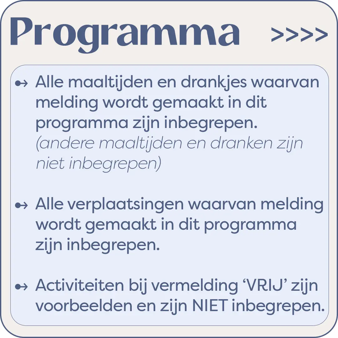Inbegrepen in de prijs van € 1.425,00 (nog 16 plaatsen)